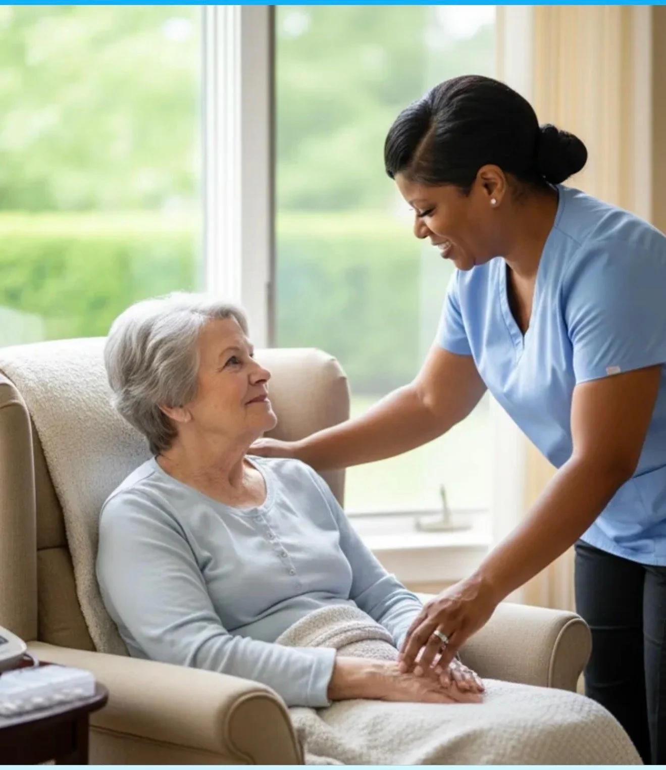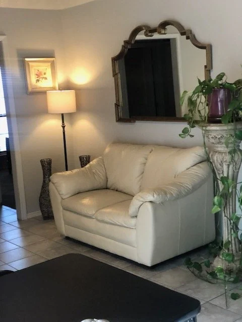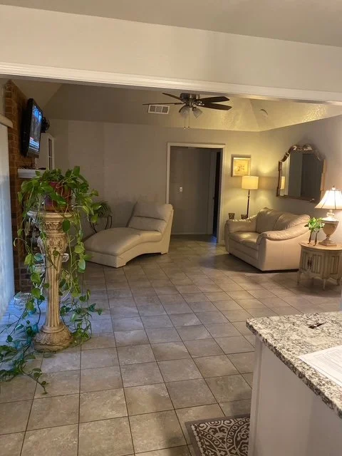 Three bedroom home with a fireplace, central heating and air conditioning, open living area, and kitchen. Our residents enjoy a peaceful home-like setting. Families are welcome during visitor hours.